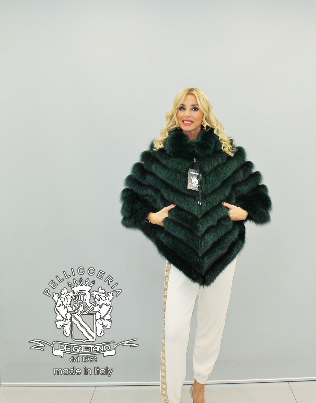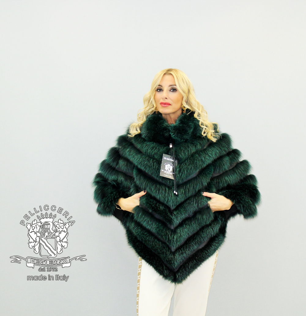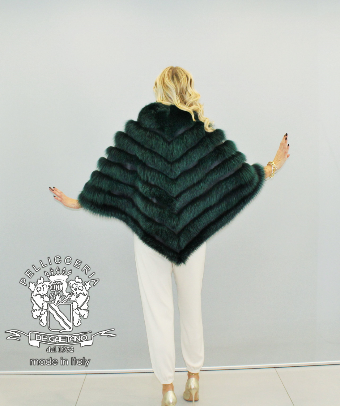 Tutto è ammirevole in questo poncho di volpe colorata. Il lavoro di colore eseguito su una magnifica pelliccia di volpe è assolutamente notevole e dona a questo poncho un aspetto moderno e lussuoso