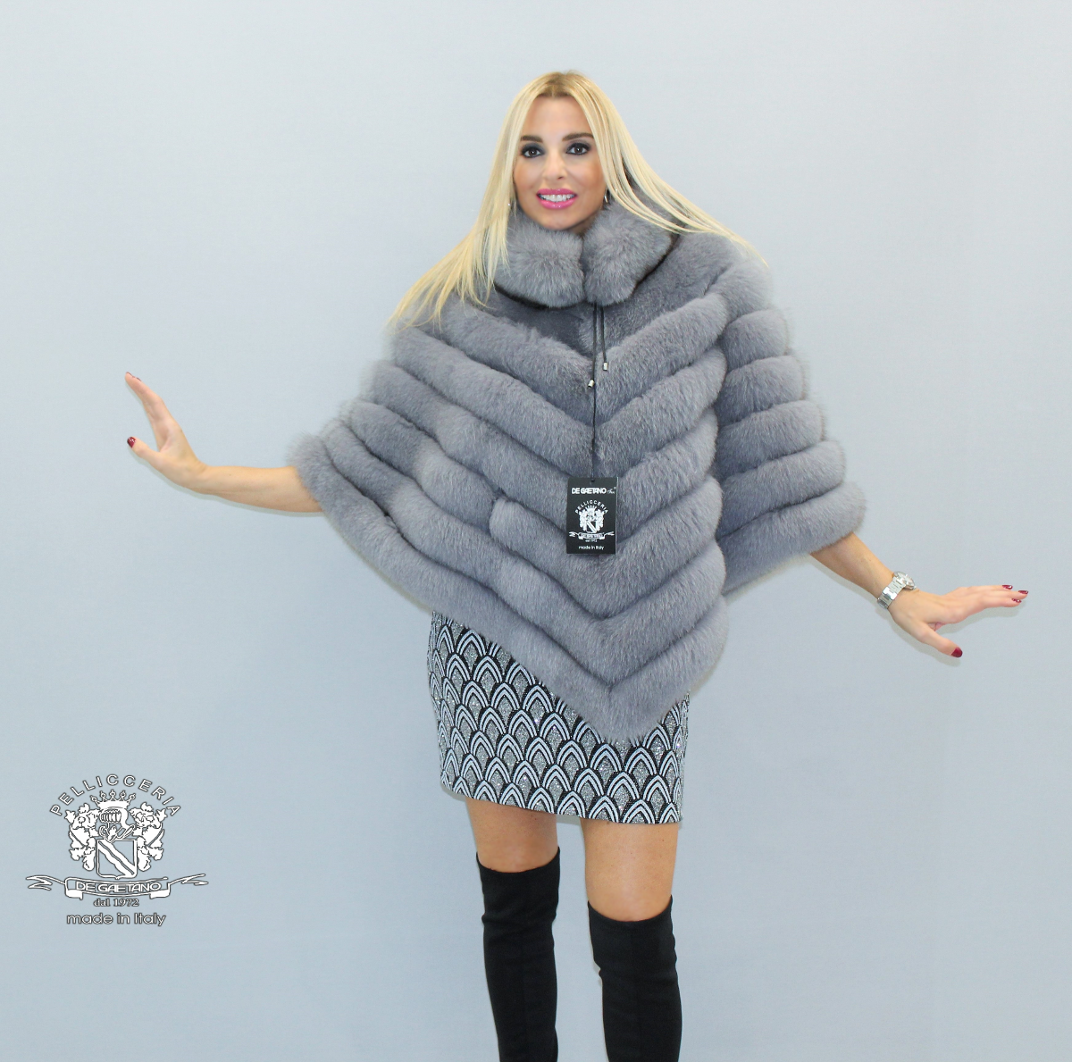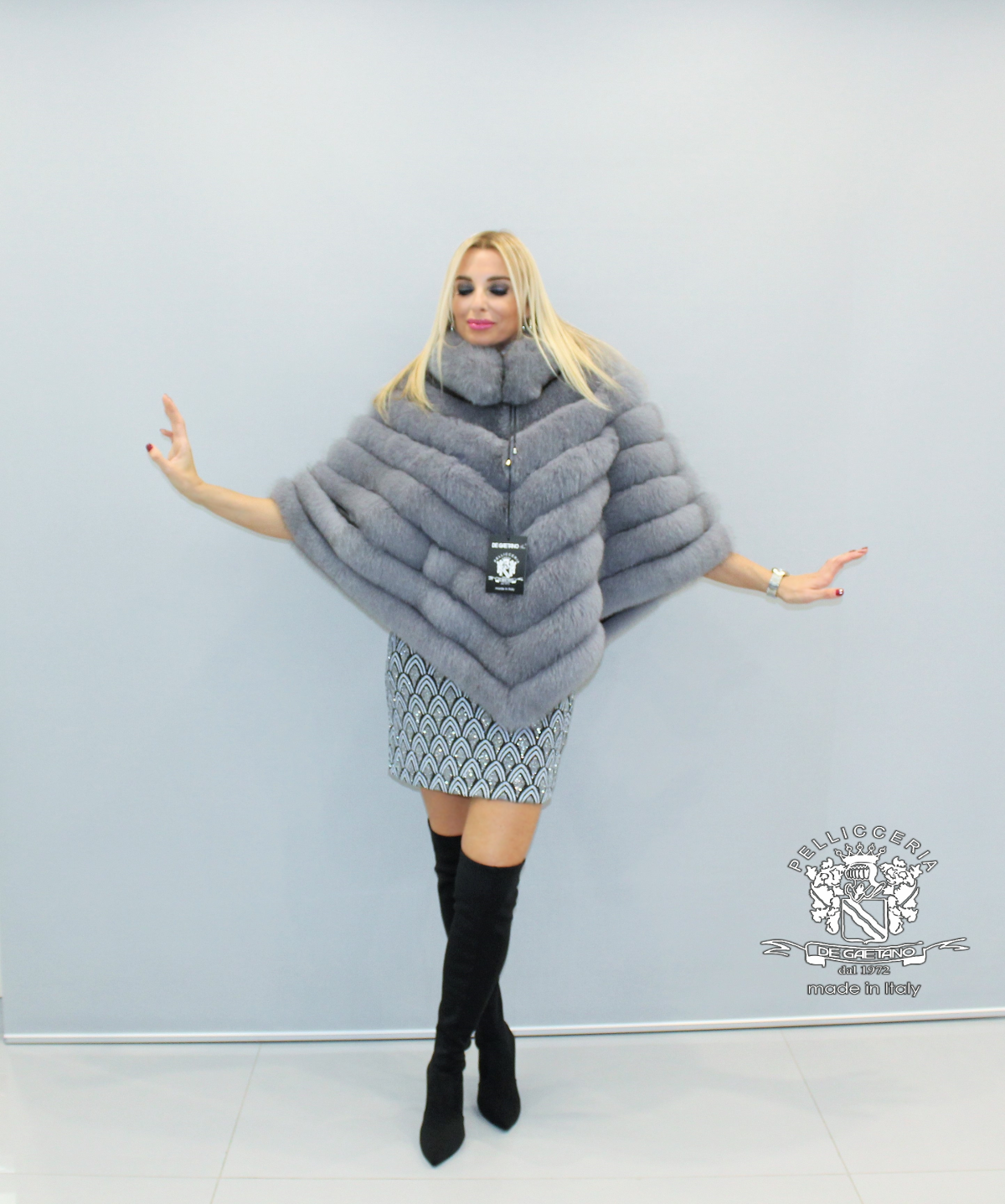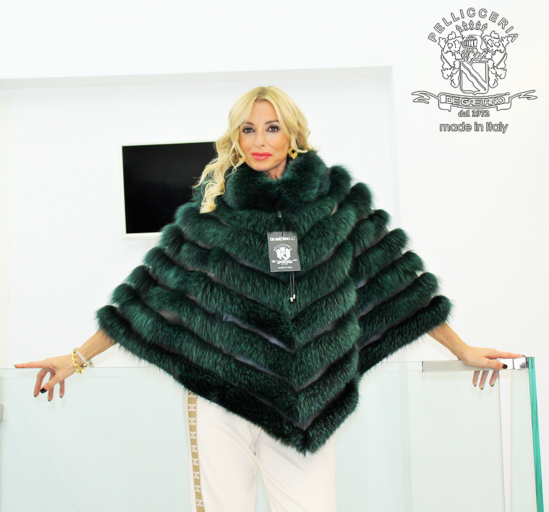 Tutto è ammirevole in questo poncho di volpe colorata. Il lavoro di colore eseguito su una magnifica pelliccia di volpe è assolutamente notevole e dona a questo poncho un aspetto moderno e lussuoso